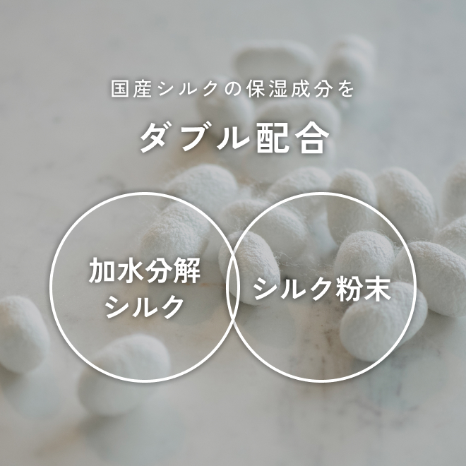 肌にやさしく、しっかりとうるおいを届ける、高品質の国産シルク。