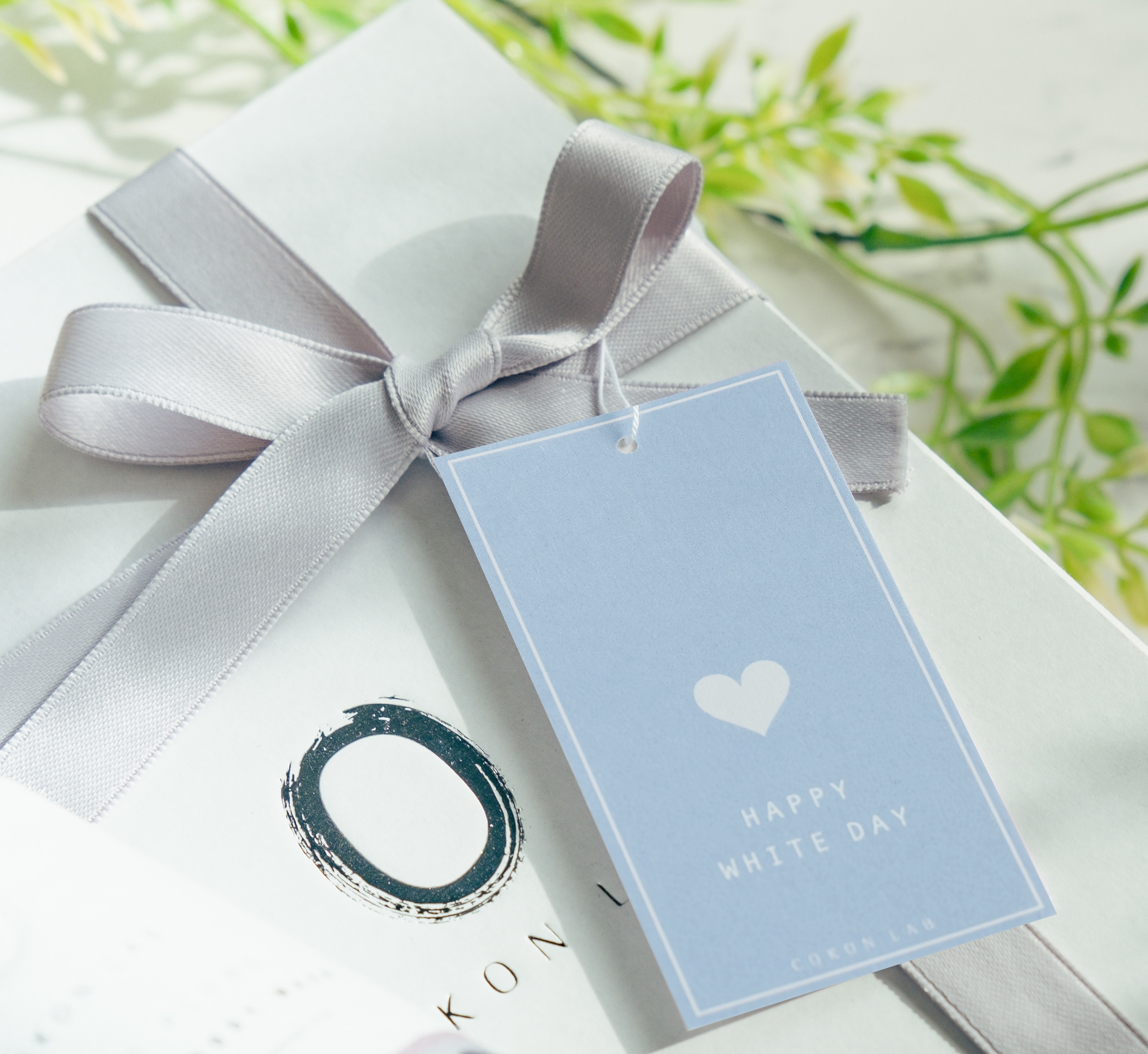 。゚+.ギフトボックスに上品なシルバーのリボンをおかけし「HAPPY WHITE DAY」のタグカードをつけてお届けいたします。゚+.