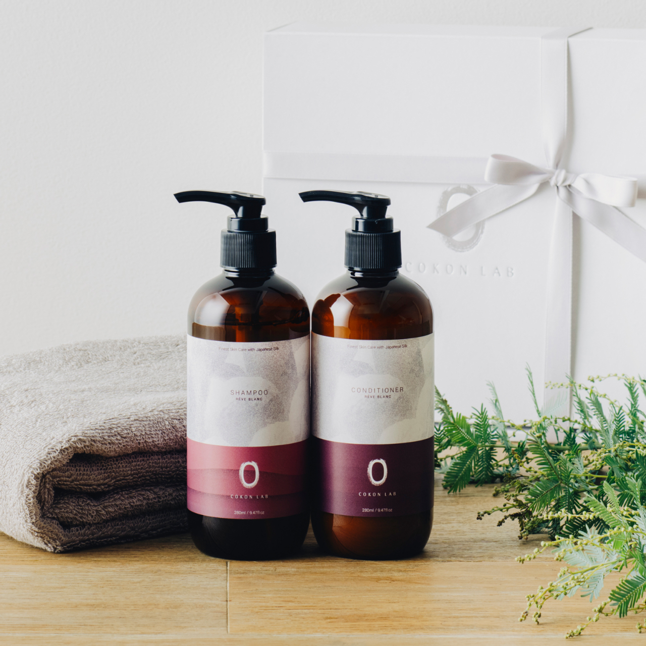 バスタイムが楽しくなる、シルク配合のヘアケアセットです。