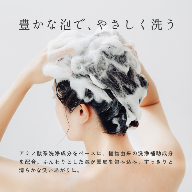 ふんわりとした泡が頭皮を包み込み、すっきりと清らかな洗いあがりに。