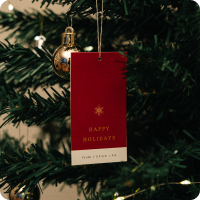 COKON LAB(ココン・ラボ)のロゴを印字した白いラッピングバッグをリボンで結び、「HAPPY HOLIDAYS」タグを付けてお届けします。