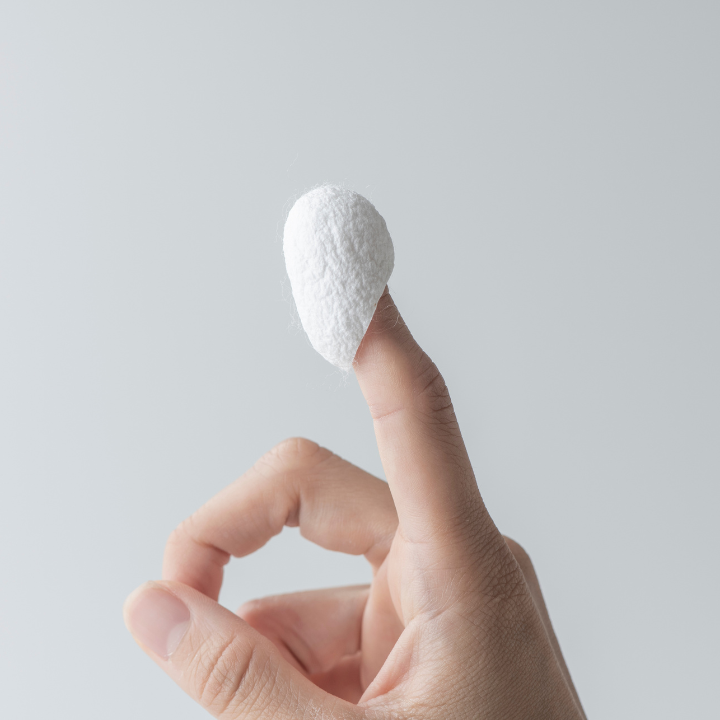 お湯でシルクボールをほぐし、柔らかくすることにより、繭玉が持つ天然由来の繊維成分「フィブロイン」が極細ブラシのように毛穴に詰まっている汚れや角質を綺麗に除去してくれます。さらに、ココン・ラボのシルクボールには天然の保湿成分である「セリン」がたっぷり。みずみずしくしっとりと保湿されたお肌に導いてくれます。